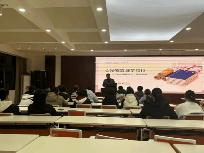 举行了“心光破茧 逐梦笃行”主题班会,中心党委副书记孟凡春、辅导员邹涛波以及24级全体本科生同学参加,班会由鲁粲主持,每位同学都分享了自己的心得感悟和新学期规划。