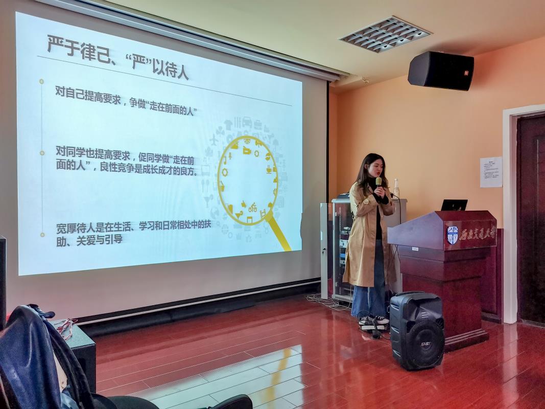 10月24日,AV大平台 本科2019级新生举行学生骨干培训会。会议由辅导员王丽霞主持,AV大平台 直属党支部副书记柯小君到场为同学们讲话。