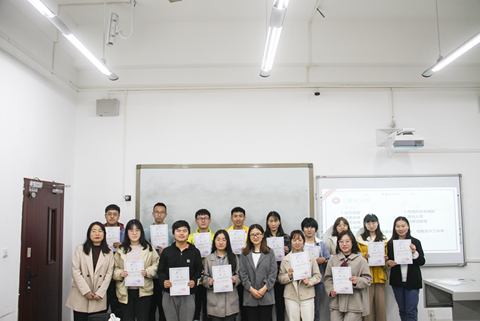 免研辅导员邢涵为团建中心成员颁发聘任证书。仪式结束后,樊老师就日后工作流程、相关要求、注意事项等对学生骨干们进行了培训并现场答疑解惑。