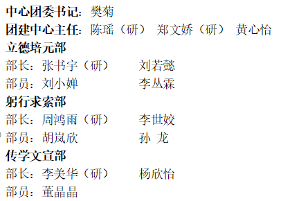 团建水平。团建中心共包含立德培元部、躬行求索部、传学文宣部三个部门。