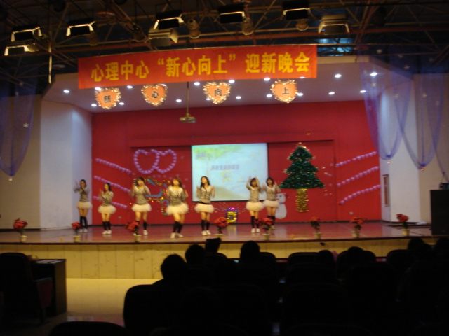 平安夜当然少不了圣诞元素,来自2010级心理一班的同学为观众带来了中英文诗朗诵《圣诞钟声 Christmas》,赢得台下一片响亮的掌声。“圣诞老人”走了,最雷人的择偶节目《非雷勿扰》来了。来自不同班级的演员们把《非诚勿扰》搬上了舞台,用更风趣幽默的方式博得全场笑声不断。这个节目中有许多亮点,男生客串女生就是亮点之一。中间更穿插了许多经典的段子,并将其校园化,比如说“镜湖大草原深度双人游”不得不堪称一绝。欣赏完了现代开心的小品,一起来听听古典的琴韵。由张青演奏,黄之恒伴舞的节目《渔舟唱晚》把观众带入一个古典的情境。琴音清越,曼舞超凡,台下掌声雷动。古典的中国风刚刚吹去,动漫风迎面而来。动漫社给观众们带来了精彩的Cosplay ,将卡通中的人物复活在舞台上,轻舞飞扬。最后,在一曲《知足》的歌声中,晚会落下了帷幕。