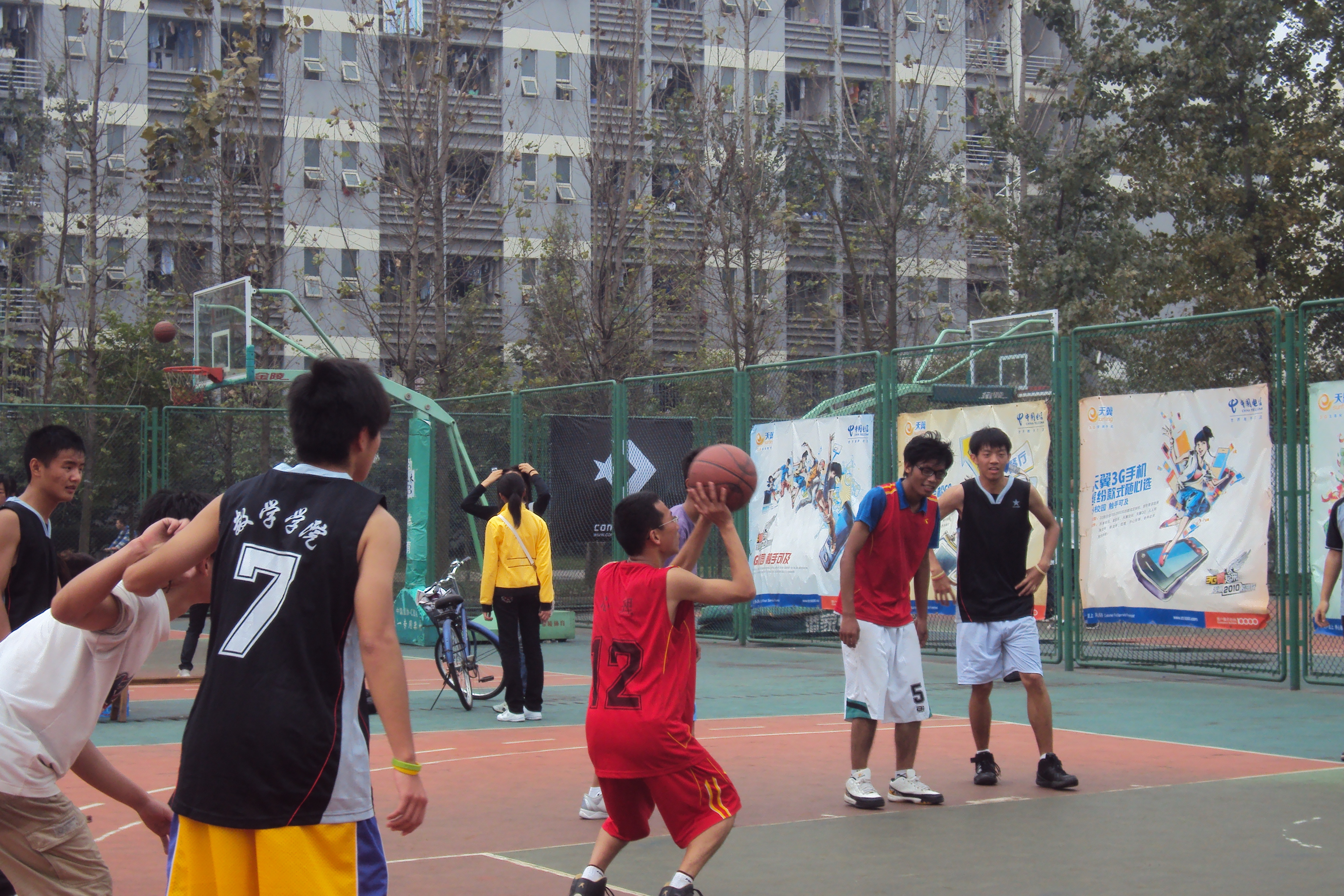比赛开始了,队员们在赛场上尽情的挥洒着青春的汗水,即使是你争我夺得的激烈,也丝毫不忘友谊第一的最高原则。就算是带伤上场的罗欢欢同学,也和其他队员一样表现得骁勇非凡。看他们严谨的防守和配合,巧妙地传球,准确迅速的断球上篮,出人意料的上篮得分,无不彰显出每位同学的朝气和热情。场边那一阵阵发自内心的加油声、呐喊声,也在这凉爽的秋风中汇成了一曲团结和睦的乐章。