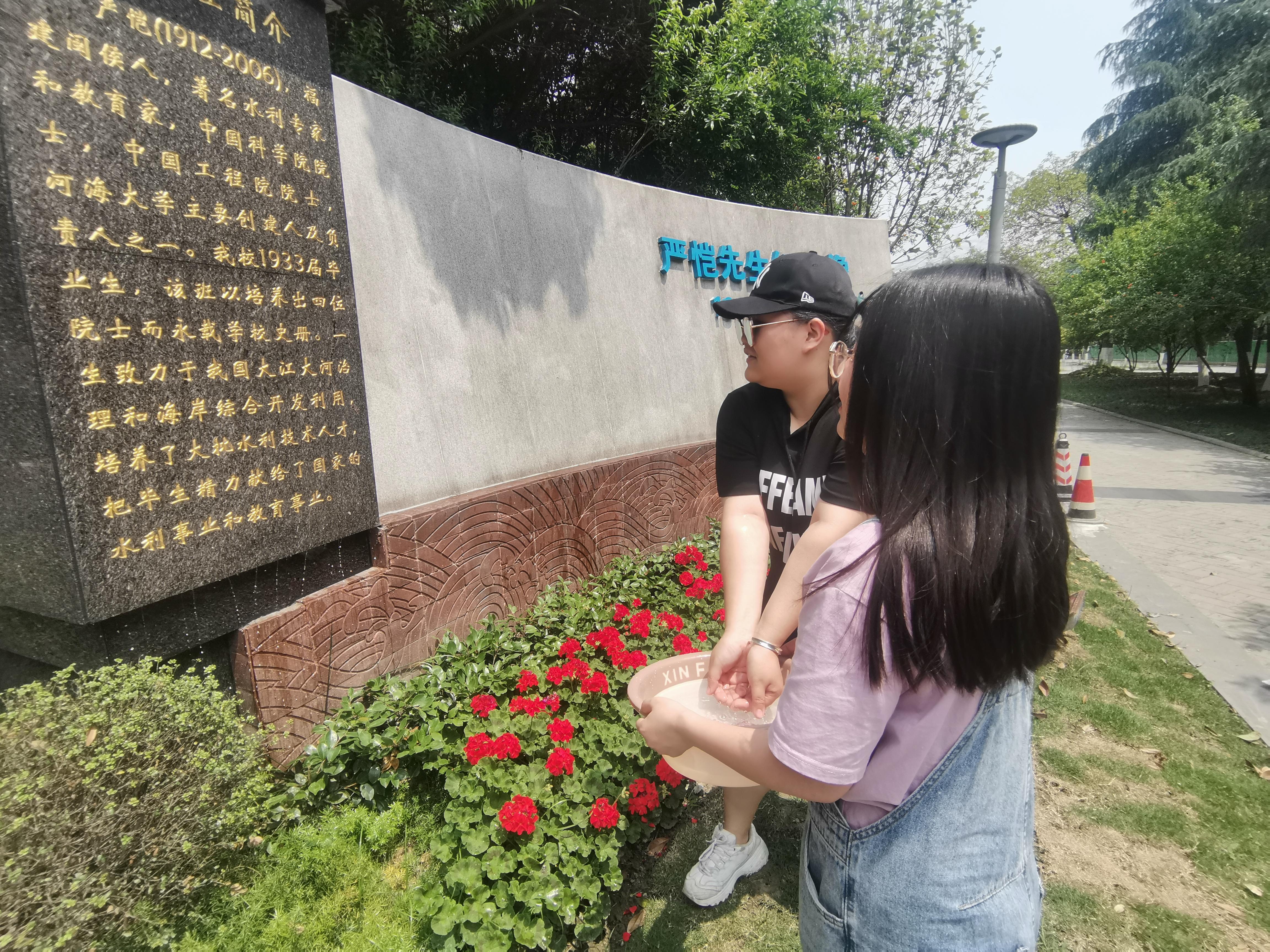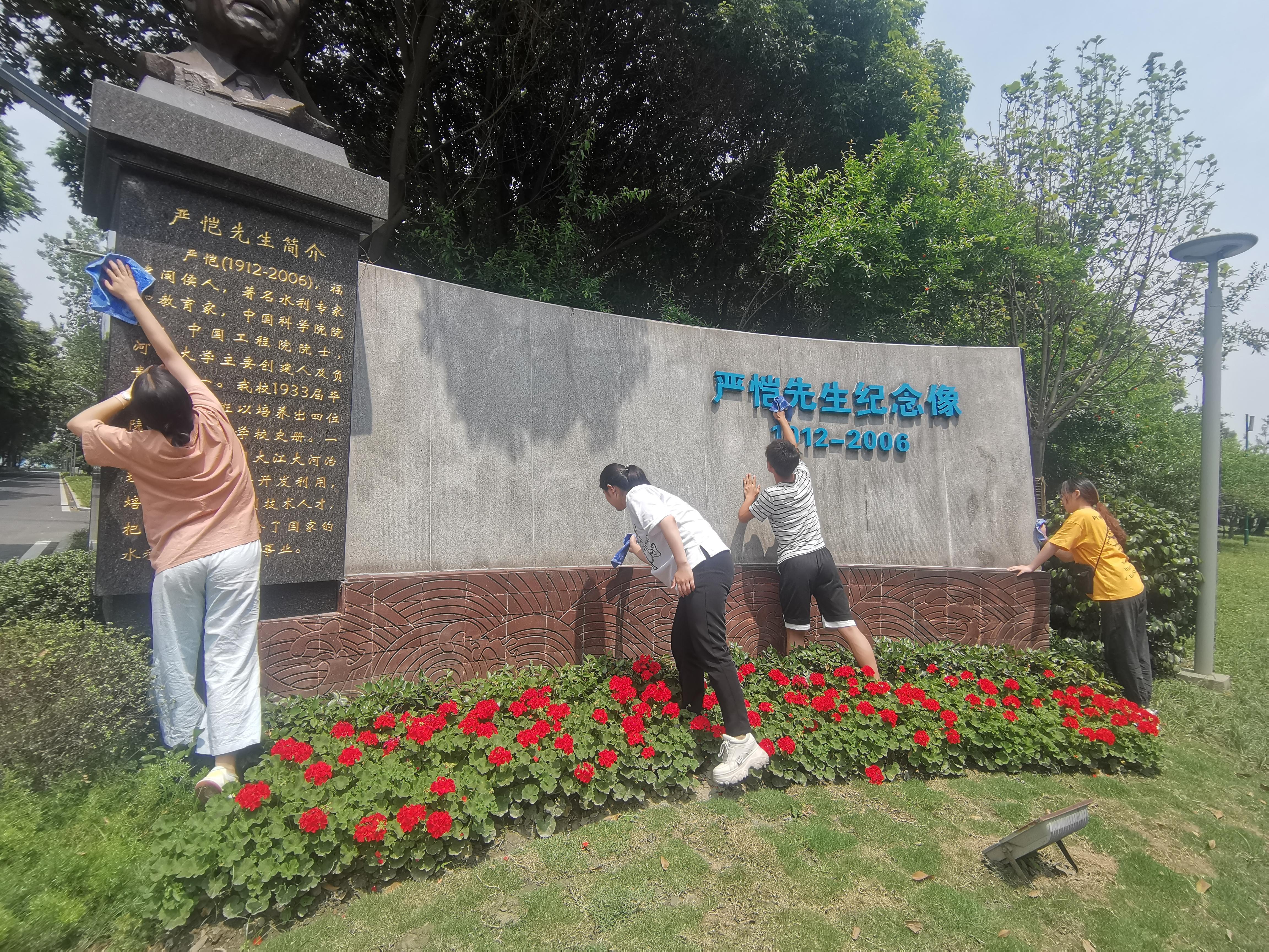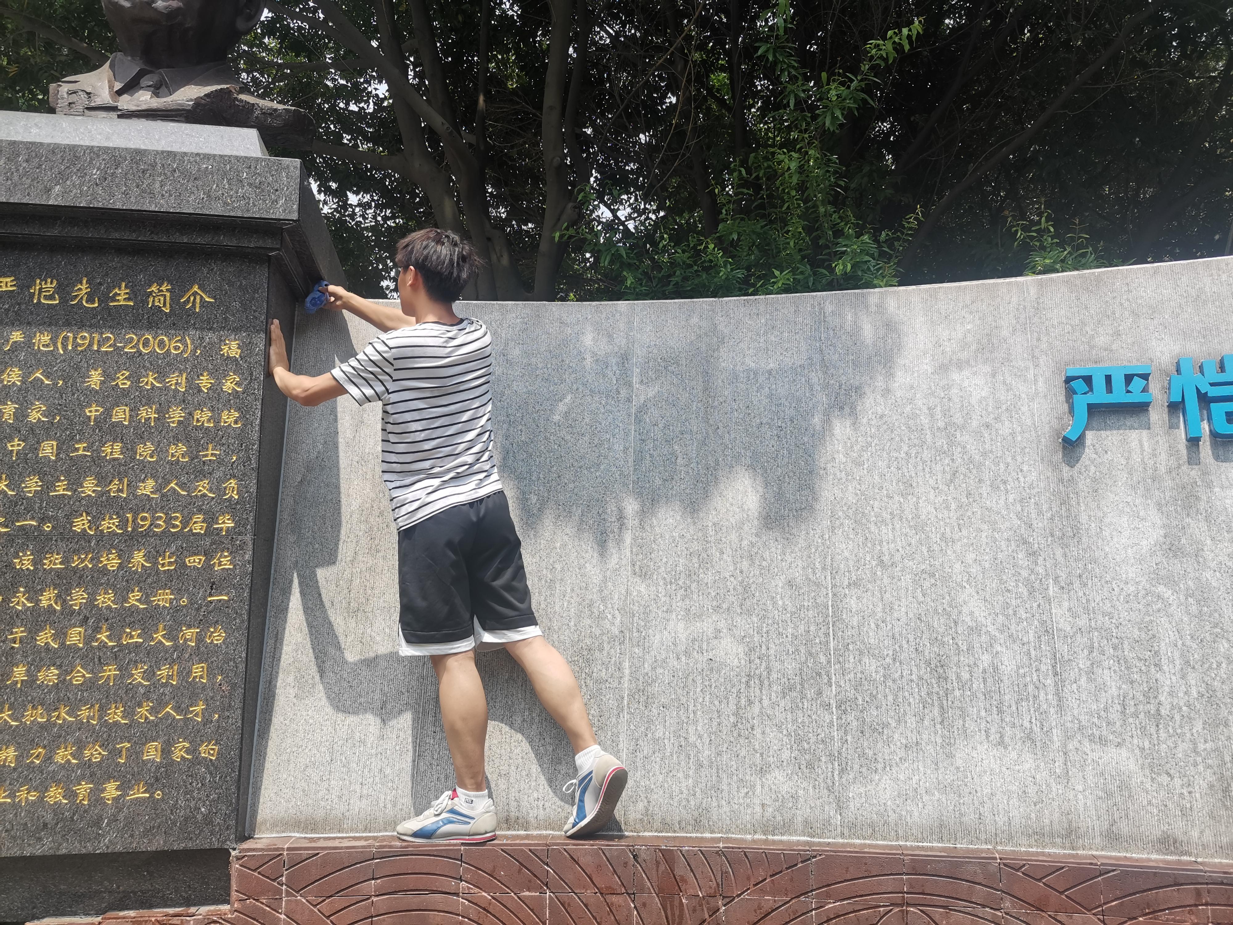 看着清洁一新的纪念像,志愿者自豪地说:“以后路过五教的时候都要更骄傲了,我也沾沾严恺先生的光。”大家都会心一笑。