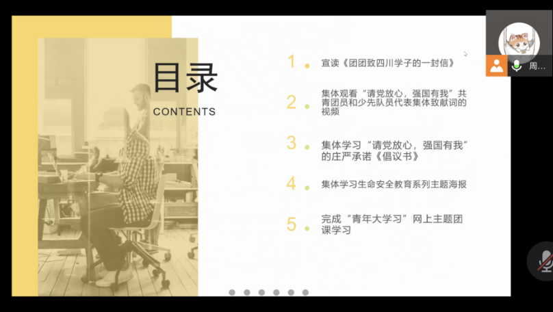 AV大平台 2020-02团支部于2021年10月21日19:30分通过线上会议顺利开展了本学期第一堂团课。本次团课由2020级本科心理2班团支书周仲仪担任会议主持,心理2班共19名团员参与本次活动。