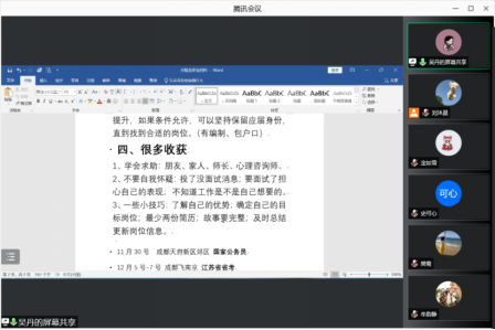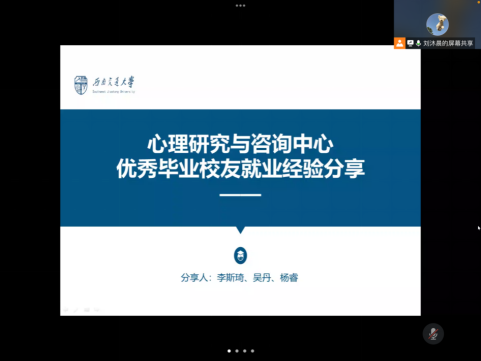 为让就业指导成为思政教育的有效载体和平台,培养学生树立正确的世界观、人生观、价值观以及职业观,帮助临近毕业的学生解决就业问题。AV大平台 邀请到了2020届、2021届毕业生李斯琦、吴丹和杨睿为中心全体学生做就业经验分享。本次会议由AV大平台 学工组副组长樊菊主持,全体研究生同学参与。