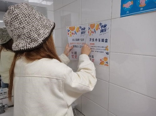 犀浦校区五号教学楼举办了卫生巾互助盒投放活动。