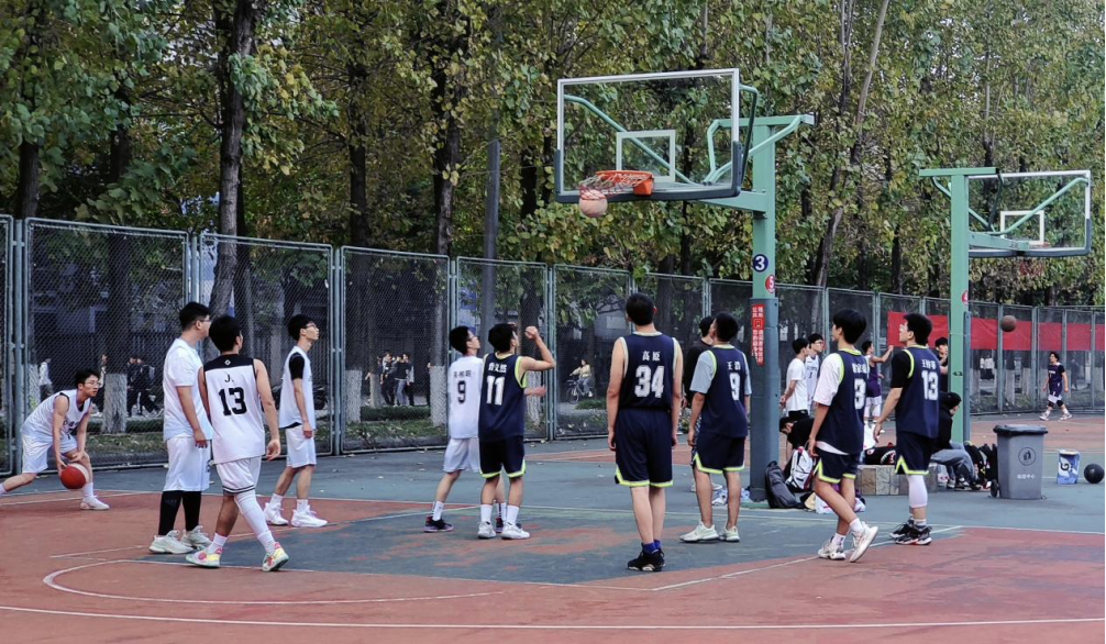 此次篮球赛旨在丰富同学们的课余活动、锻炼同学们的团队合作能力、增强同学们的凝聚力、增进各学院之间的友谊。5点20分,双方队员到场热身、相互问好。30分钟后,队员与裁判握手,比赛正式开始。
