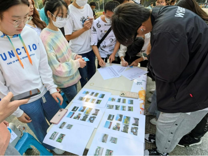 活动伊始,志愿者同学热情地为参与活动的同学们讲解活动流程:首先,让参与的同学们签到并领取交大标志卡片;其次,签到后动身游历校园,记录交大校园里的二十个景观点;最后,将拍摄到的交大美丽景观上传至活动群由志愿者筛选并评奖。