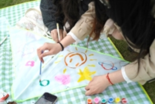 在满园春光里,同学们兴致盎然,以两两为一组,通力合作,充分发挥天马行空的想象力,在风筝上写下对未来的寄托、画出心中的乌托邦、涂上最喜欢的色彩。透过小小的一块风筝纸,暂时忘却烦恼、寄托真挚的梦想。