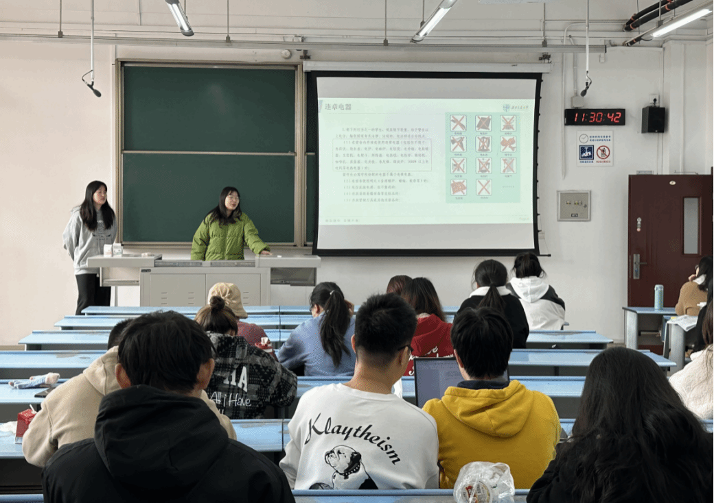 2021级本科生班级于2023年11月13日在X2426开展了安全教育主题班会。本次主题班会包括防范电信诈骗和宿舍安全两大内容,班会由权益委员王思远和宫玉翠主持,辅导员李艳出席并进行了总结,全体2021级本科生参与。