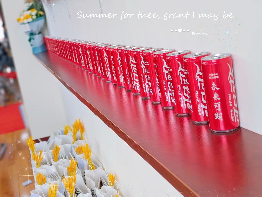 The customized cola symbolizes that all students who receive the cola will live a happy life in the days to come.
