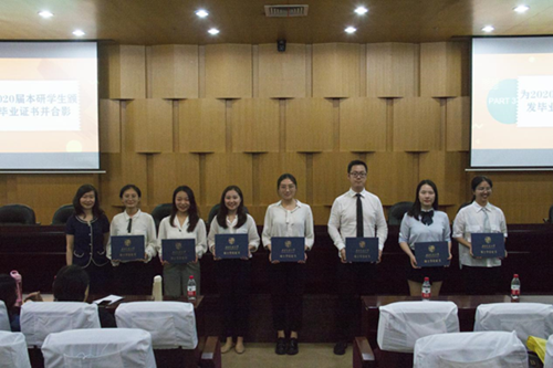 After the speech, Director Chen Hua and Deputy Director Lei Ming presented diplomas respectively to the bachelors and masters of 2020 and had photos taken with the students. Meanwhile, He Yanan—a representative of the graduates—offered flowers to Chen Hua as a gesture of gratitude for the earnest and tireless teaching and cultivation by the university, the center and the teachers.