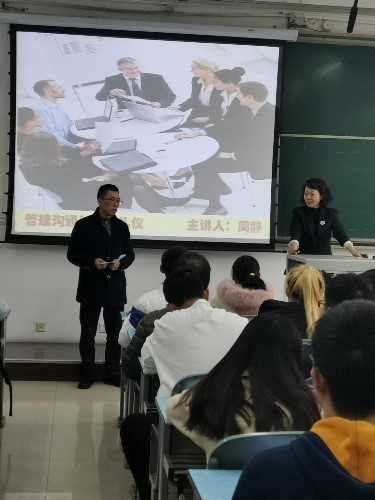 Mr. Ke first introduced Mrs. Zhou and emphasized the importance of the lecture to the students before the lecture and hoped that the students could gain something from the lecture. Mrs. Zhou introduced the basic points of workplace communication from two aspects at the beginning of the lecture: “the importance of communication” and “what is communication and how to communicate in the workplace”. Zhou quoted many examples based on her own experience and famous people’s stories in the process, which made the explanation vivid and convincing.