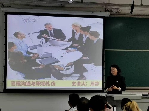 The vibe of the whole lecture was very good and Zhou’s explanation was gripping. While listening carefully, the students took notes to record the key knowledge points. Mrs. Zhou stepped down from the platform for many times to interact with the students during the lecture so that the students could capture the importance of effective communication closer. Mrs. Zhou’s humor made the classroom full of laughter in the 90 minutes and students also received a lot of knowledge about workplace communication while laughing.