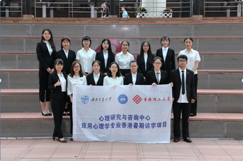 In order to broaden the students' international horizons, help them further expand their psychological knowledge and accumulate practical experience in world-class enterprises, the Psychological Research and Counseling Center of Southwest Jiaotong University launched a learning visit to Hong Kong with the theme of applied psychology. The study visit lasted for 8 days and mainly included four parts: university course study, famous enterprise practice, humanities survey and completion competition. The visiting team was composed of eight undergraduates, five postgraduates, with two teachers leading the team.