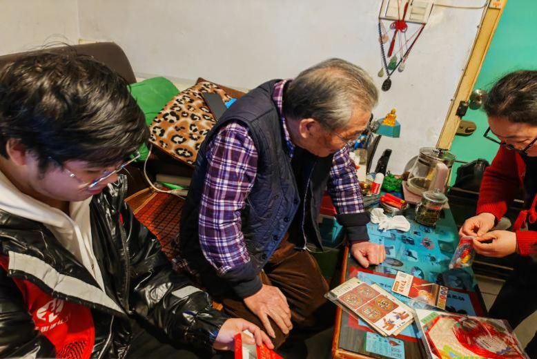 在入户走访中,队员们通过检查家中的插线板、煤气管等,替换老旧的插线板,为老年人排查了家中的安全隐患。此外,队员们通过拉家常、摆龙门、谈趣闻的方式,和老人们亲切互动。为了促进交流互动,队员们准备了窗花和灯笼等手工材料,并邀请老人们一起制作、张贴,营造了节日的喜庆气氛。在征得老年人的同意后,队员们还做起了擦桌子、拖地板等力所能及的家务,提前帮助老年人完成新年大扫除。
