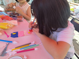 本次活动的最大亮点是将传统非遗文化与心理艺术创作相结合。在漆扇制作环节,孩子们在志愿者的指导下,学习传统漆艺技法,并通过色彩搭配和图案设计表达内心情感。漆扇不仅是一件手工艺品,更成为孩子们情绪表达的载体。志愿者还引导孩子们分享创作背后的故事,帮助他们觉察和表达自己的情绪。