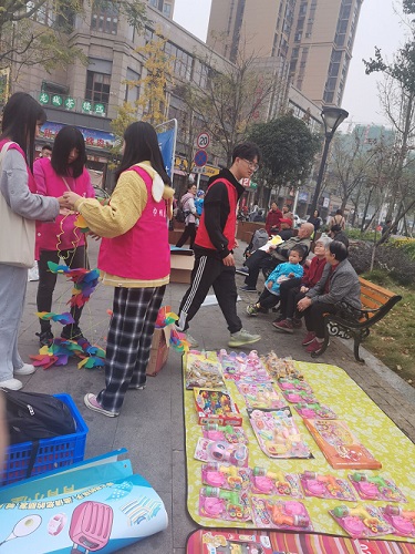 中午十二点,所有的活动宣告结束。参加活动的孩子和家长们有序离场,三个团队的志愿者们共同协助整理剩下的爱心卖品、收回图书借阅点的图书、关闭现场的摊位。打扫好活动现场后,三个志愿者团队和“青青小屋”的工作人员围成一圈,总结本次活动的得失。志愿者们均表示这次活动积累了丰富的经验,今后一定会再接再厉,将活动越办越好。