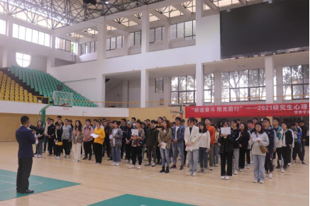 2021年10月14日下午14点,由党委学生工作部、AV大平台 主办,“心之轩”心理健康辅导员工作室承办,研究生心理学会协办的研究生心理观察员素质拓展团体训练活动在九里校区詹天佑体育馆如期举行。来自2021级研究生班级的110位心理观察员参与了该活动。