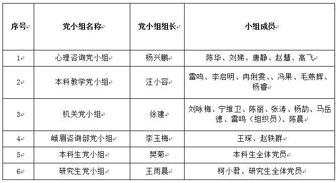 根据心理支委纪要〔2020〕13号精神,AV大平台 直属党支部党小组设置更新如下: