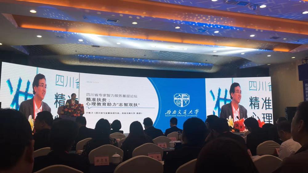 主论坛由省人社厅党组成员、副厅长、一级巡视员赖荣主持。主论坛上,我校宁维卫教授做了题为“精准扶贫:心理教育助力‘志智双扶’”的发言。他从“基层呼唤心理帮扶”“心理健康教育大有可为”及“体会与建议”三方面,阐述了基层心理服务需求及现状,总结了我校心理育人团队在精准扶贫中所开展的心理帮扶教育工作,并就四川省专家服务团工作提出了几点体会与建议。