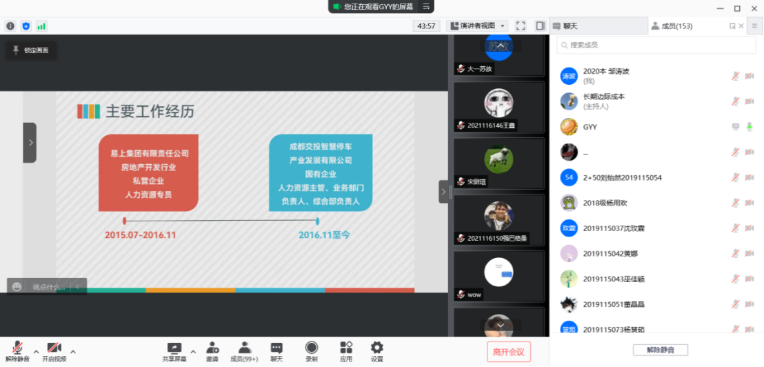 至此本次就业经验分享讲座圆满结束,同学们表示获益颇多,也对未来的就业安排以及职业规划有了更加清晰的认识。