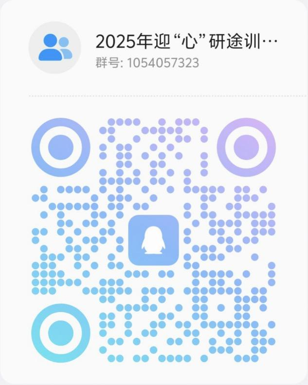 1. 本次心理训练营因名额有限需提前预约报名,请有意愿参加的同学于8月25日前加入QQ群:1054057323,或扫描下方二维码加入群聊进行报名。