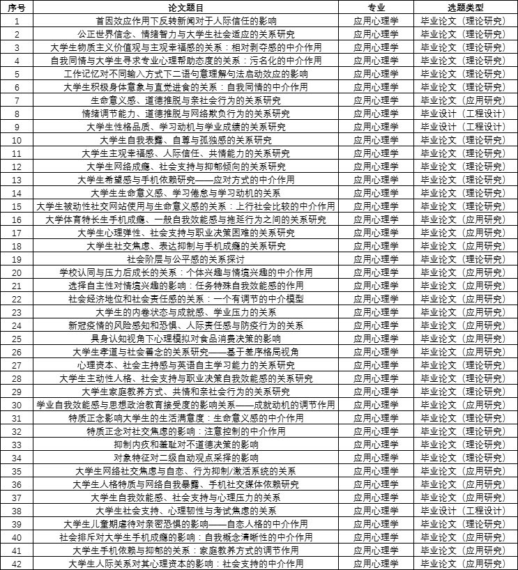 根据教务处《关于做好2022届本科毕业设计(论文)选题、开题工作的通知》要求,本科教研室从9月启动本科生毕业论文的相关工作,经过组织指导老师研讨、指导教师在教务网发布选题、毕业论文选题审核、学生与指导老师互选匹配等环节,最终确定了42个毕业论文选题。现将最终结果予以公布。