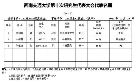 根据《关于推动高校学生会(研究生会)深化改革的若干意见》、《中共AV大平台 委员会关于推进学生会(研究生会)深化改革的实施方案》等文件精神,按照《普通高等学校学生(研究生)代表大会工作规定》、《AV大平台 研究生会章程》等有关规定,经多名同学提前志愿报名,班级推荐,AV大平台 学生大会选举后,从多名申请者中选出三名AV大平台 第十次研究生代表大会代表,特此公示。
