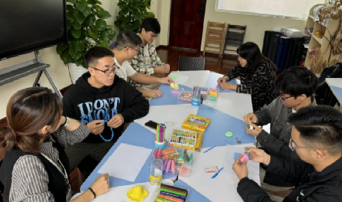 最后,同学们两人一组在黏土上做出调整,象征着对压力的积极改变,并分享了活动感受。