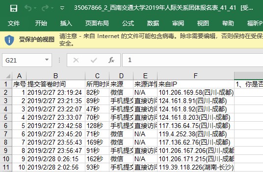 图1 问卷星“下载答卷数据”后Excel表格截图示例