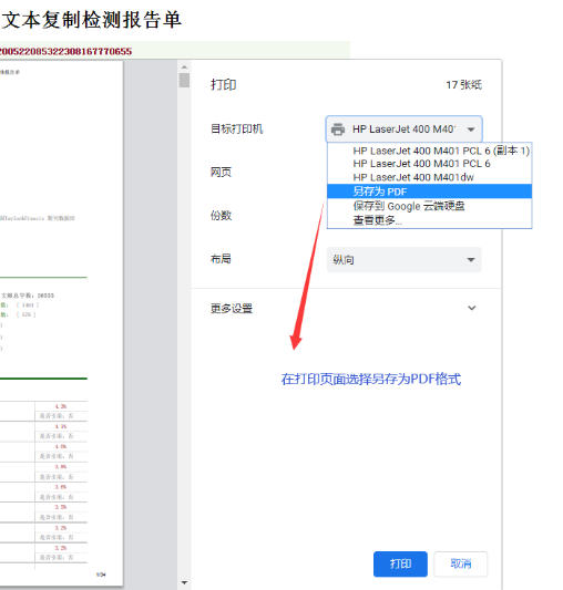 报告也可在检测记录里获取,在论文检测完之后的报告单是以html格式提供,大家可以直接复制网页链接在打印店打印,如果需要电子稿可以在打印页面另存为PDF格式保存。
