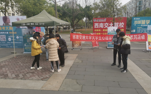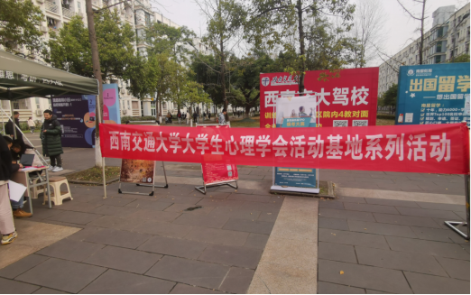 为增大心学影响力,让更多同学认识心学,了解心学活动基地,积极参与心学后续活动,大学生心理学会举行了活动基地系列活动摊位宣传。