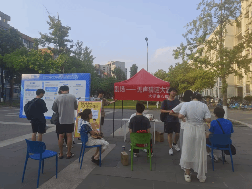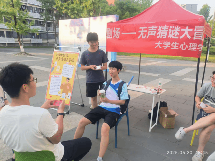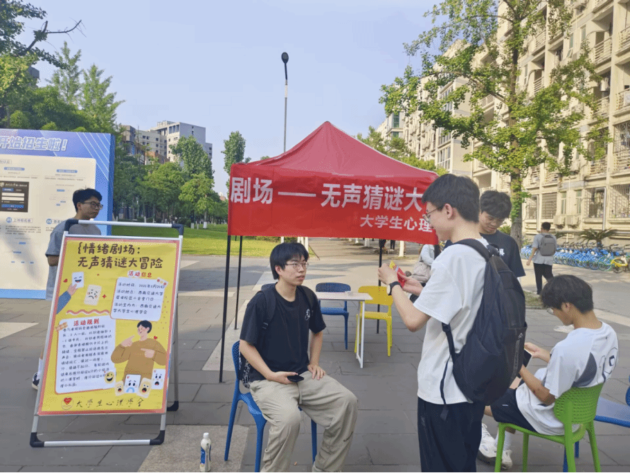大学生心理学会主办的 “情绪剧场:无声猜谜大冒险” 主题活动在犀浦校区二食堂门口顺利开展。此次活动以趣味互动为载体,融合心理学知识,吸引了众多同学踊跃参与,为校园心理健康教育注入了新活力。