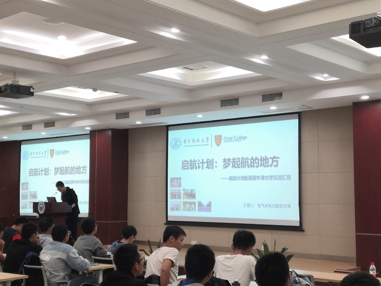 2019年10月18日晚,华中科技大学电气学院“启航计划”优秀学子分享会在电气大楼B203多功能厅举行。“启航计划”为华中科技大学学生工作处资助中心主办,教务处与各院系协办的资助项目,旨在帮助经济困难的优秀本科生完成境外公派交流项目,拓展国际视野、丰富学习阅历、提升综合素质。