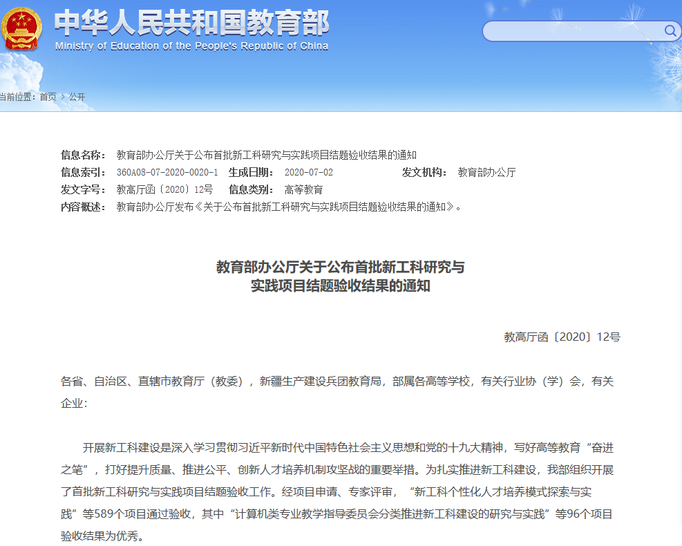 据悉,经项目申请、专家评审,“新工科个性化人才培养模式探索与实践”等589个项目通过验收,其中96个项目验收结果为优秀。华中科技大学共有3个项目被评为优秀,优秀率100%。