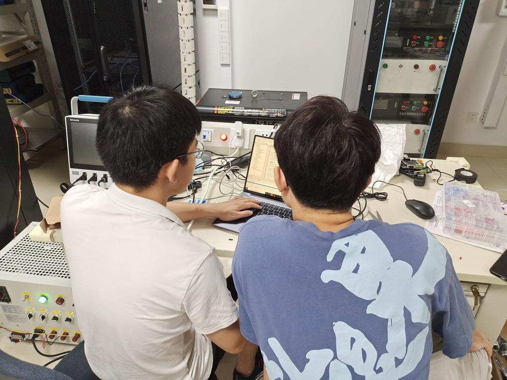 电气学院应电系邹旭东老师组研究生调试逆变器电路板