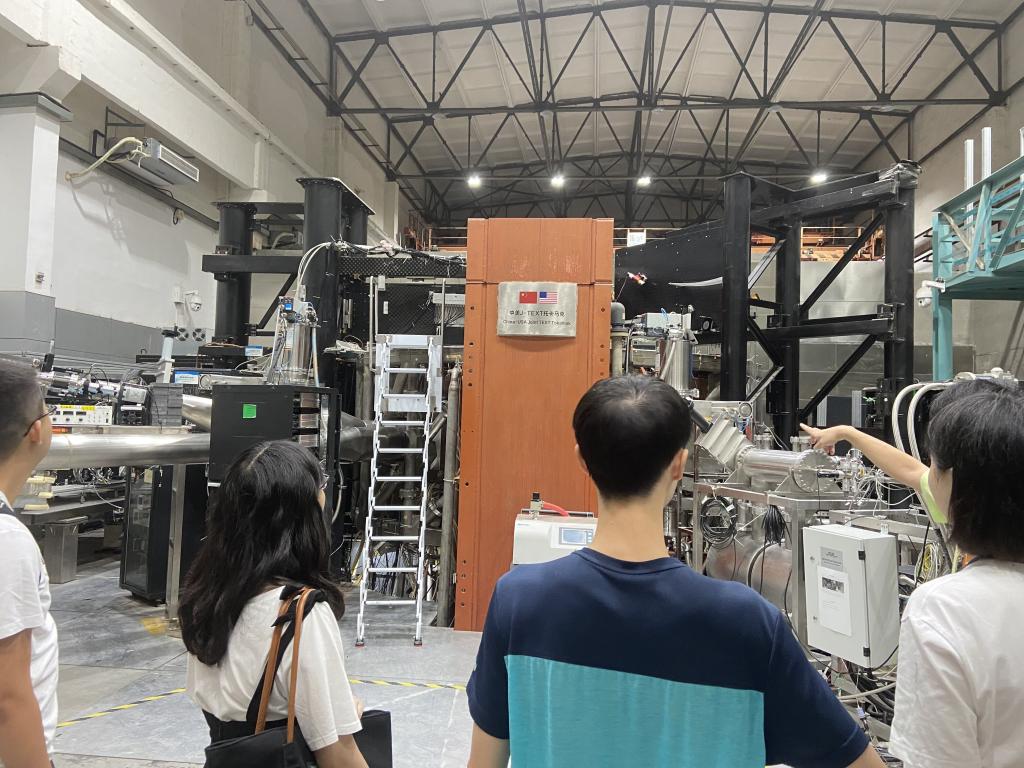 电气学院研究生李存凯带领新生师弟师妹参观J-TEXT磁约束可控核聚变装置