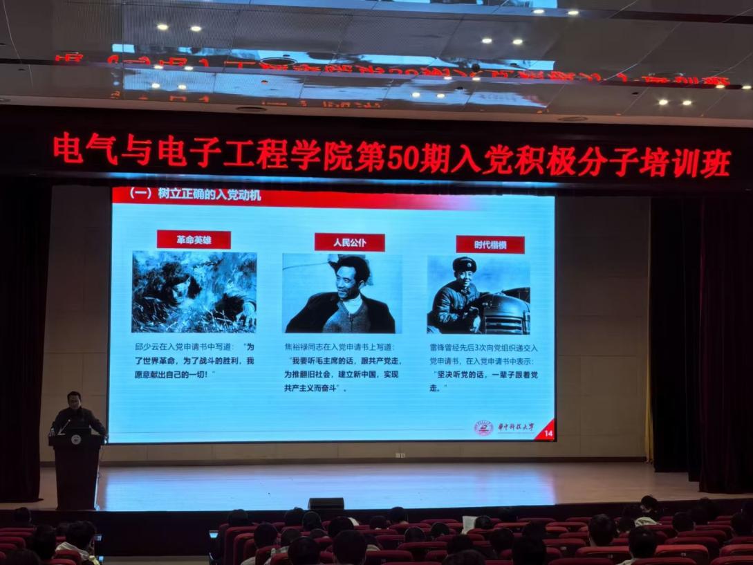 开班仪式后,系统的理论授课环节有序展开。本次系列课程围绕青年成长与理想信念教育,分三个专题系统展开,引导学员深化思想认识,坚定政治方向。第一讲,校党委办公室、校长办公室职员陈璞赟老师以“青春孕育无限希望,青年创造美好明天”为切入点,结合习近平总书记关于青年工作的重要论述,深入阐述了新时代青年树立正确人生价值观、筑牢政治信仰的重要性。第二讲,人工智能与自动化学院党委副书记曹攀辉老师从“中华民族伟大复兴的历史使命”“党的百年光辉历程”“党的发展经验与启示三个维度”,回顾了中国共产党自诞生以来的奋斗之路。第三讲,光电信息学院、研究中心党委副书记李文龙老师聚焦入党实务,阐明了端正入党动机的思想内涵与实践要求。同时,他系统介绍了入党所需具备的条件、具体流程与规范,为学员们提供了清晰、规范的入党指引,助力大家从思想到行动积极向党组织靠拢。