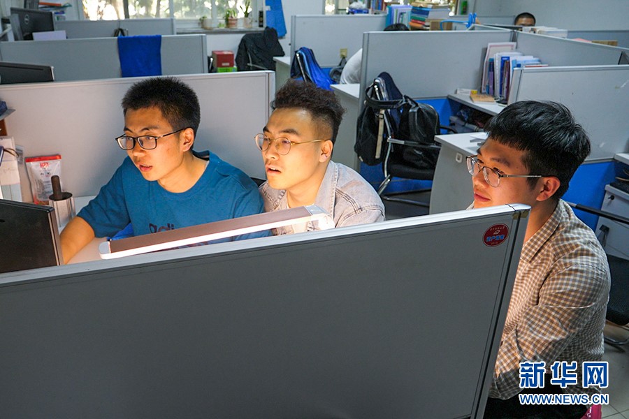 图为杨江涛(左一)与同学们进行学习交流。新华网 李晓笛摄
