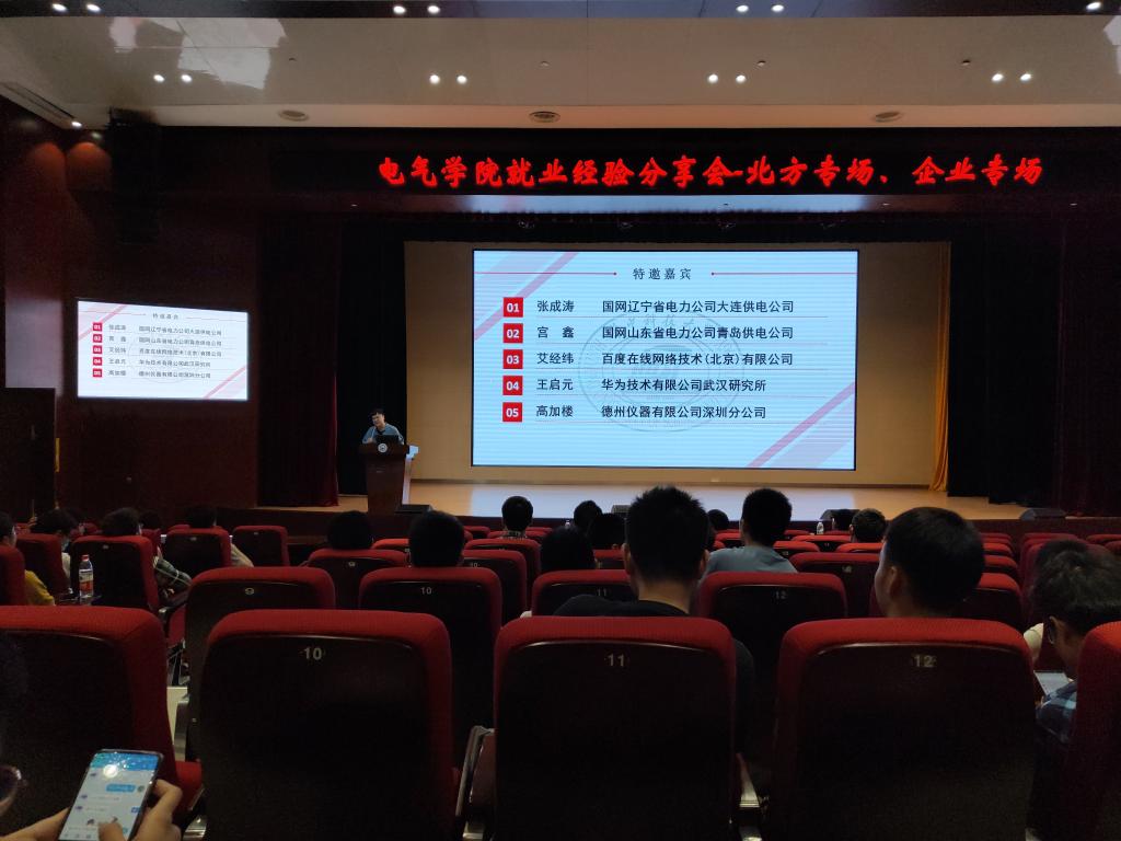 2021年5月28日晚,电气学院第四期就业经验交流会北方及企业专场在电气大楼B205多功能厅举办。2021届优秀毕业生代表张成涛、宫鑫、艾经纬、王启元、高加楼结合自身经历向到场同学分享了就业流程和求职经验,会议由就业服务中心的车俊儒主持。