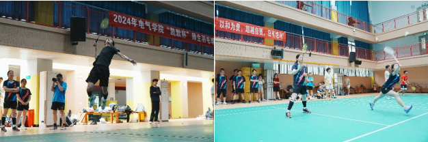 比赛现场,参赛选手们斗志昂扬,各显神通,时而激烈扣杀、时而巧斗网前,只见白色的羽毛球在空中飞舞,划出一道道美丽的弧线,激烈的比赛也变成了赏心悦目的视觉盛宴。从小组赛到淘汰赛,选手们纷纷拿出看家本领,激烈角逐。场上的运动健儿顽强拼搏,场下的观赛队友喝彩欢呼,彰显了电气师生团结一致、奋力拼搏、永不言弃的精神风貌。
