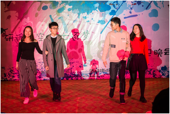 电气与电子工程学院“研途星空•一柒逐梦”研究生迎新晚会与2018年1月14日晚19:00在百景园三楼大厅隆重举行,学院党委副书记罗珺与研究生辅导员雷浩南参加活动。晚会节目精彩纷呈,表演间隙的小游戏更是让观众们热情高涨。