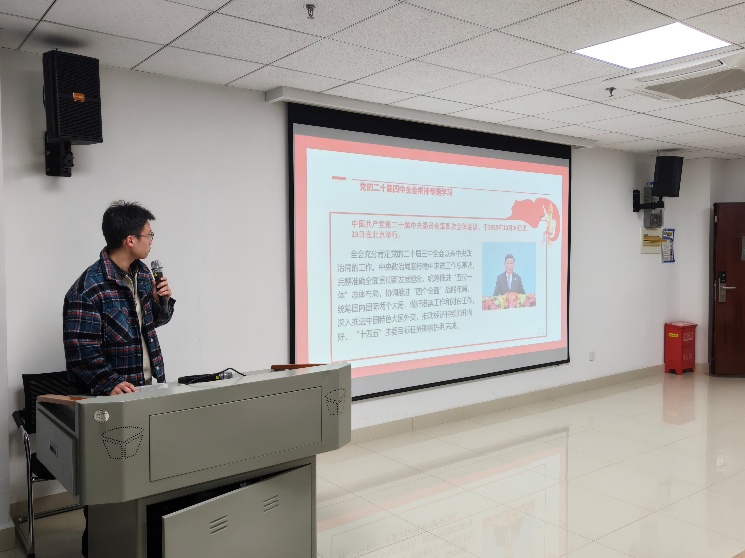 李韬同志为支部成员作专题分享,先后解读了党的二十届四中全会精神与安全生产相关要求。党的二十届四中全会于2025年10月20日至23日在北京召开,会议既充分认可党的二十届三中全会以来中央政治局的工作成效,也高度肯定“十四五”时期我国发展的重大成果。