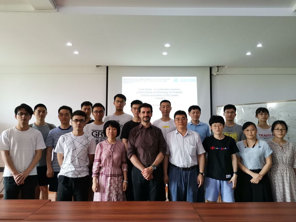 此次讲座主要针对电力电子专业领域的科研人员,参加人员除本校硕士、博士生外,还吸引到来自武汉大学、海军工程大学的师生。6月28日,最后一天讲座结束之后,所有人对Iannuzzo教授这一周的精彩讲座表示了衷心的感谢,全体人员合影留念。