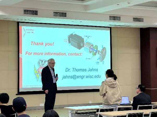 2024年11月11日,应学院曲荣海教授邀请,美国国家工程院院士、IEEE会士,美国威斯康星大学电机与电力电子中心(WEMPEC)共同主任Thomas M. Jahns教授来访电气学院。Jahns教授是国际公认的电气工程学科著名学者,曾任IEEE电力电子协会主席,获IEEE尼古拉·特斯拉奖、IEEE工业应用学会杰出成就奖和IEEE电力工程奖章。