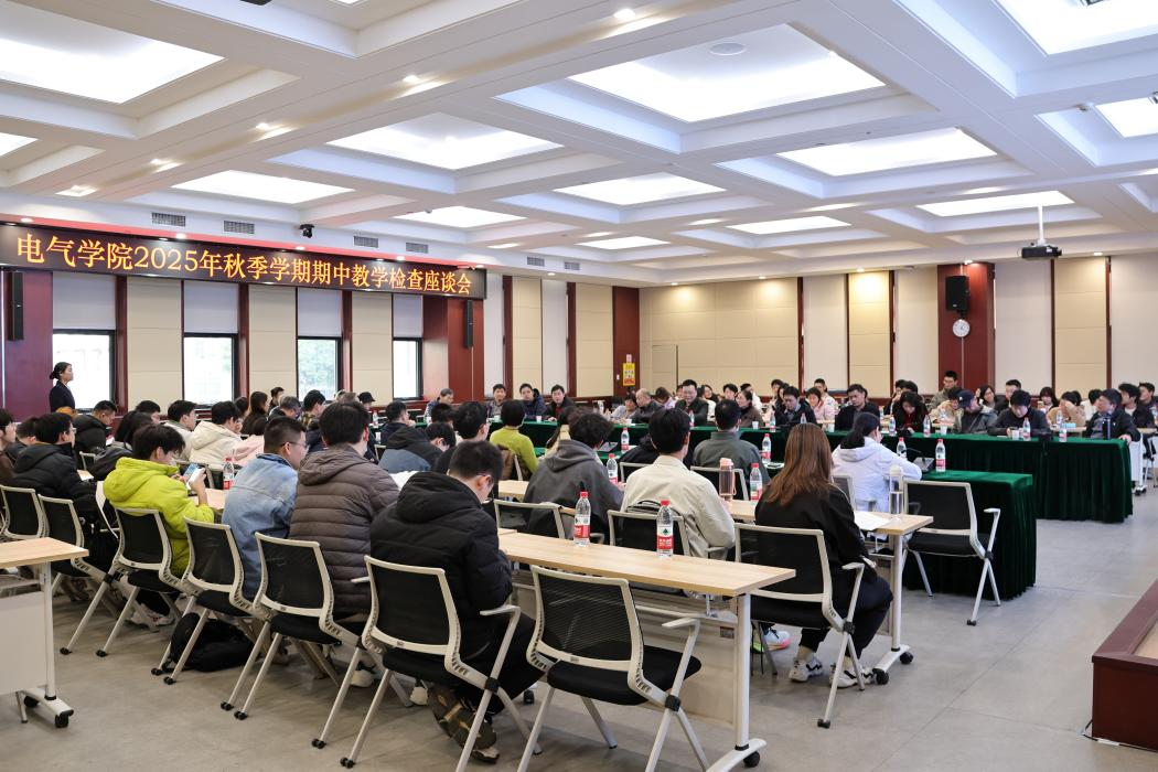 11月27日下午,电气学院2025秋季学期期中教学检查师生座谈会在电气大楼B201多功能厅顺利举行。学院副院长杨勇,教学顾问组专家孙亲锡,各系所教学负责人、课程组组长,教务科与学工组相关工作人员,以及本科生各年级学生代表参会,同时邀请数学系微积分、复变函数、线性代数三门核心课程的组长参会,近60余人共同为教学提质献策。座谈会由杨勇主持。