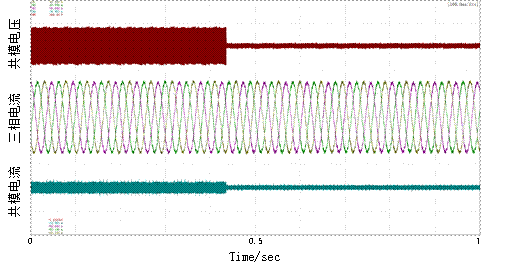 项目试验结果:电机机壳对地电压和共模电流在投入主动抑制方法后迅速下降