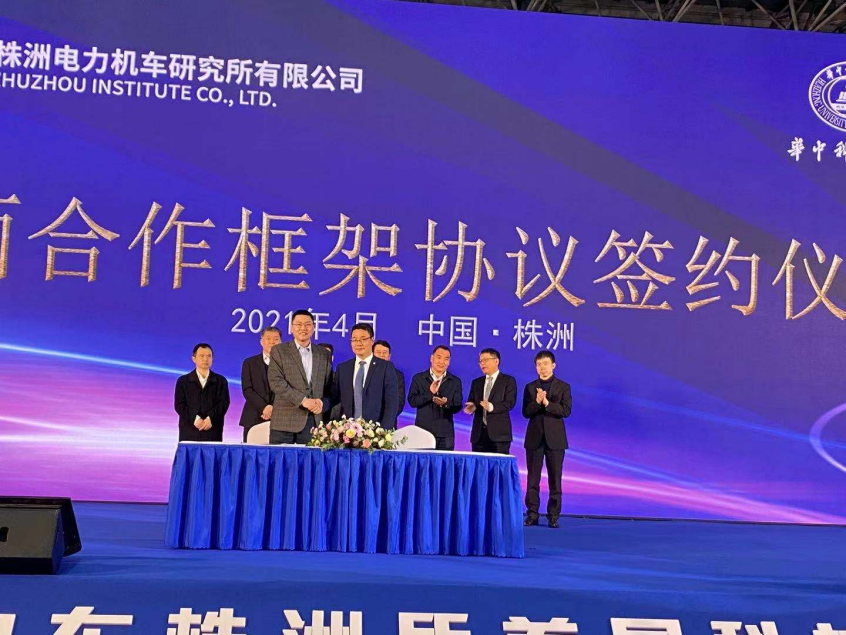 华中科技大学与中车株洲电力机车研究所及株洲变流技术国家工程中心长期开展应用技术和人才培养合作。2021年4月,中车株洲电力机车研究所与华中科技大学签署全面合作框架协议,电气学院张明副院长参与签约仪式。中车株洲电力机车研究所还参与了电气学院杨凯教授牵头的“新一代中压和高压转换关键技术研究”长江教育创新带科技创新与人才培养合作体建设。2022年双方在磁悬浮轴承领域的合作成果获得中国电工技术学会技术发明二等奖。