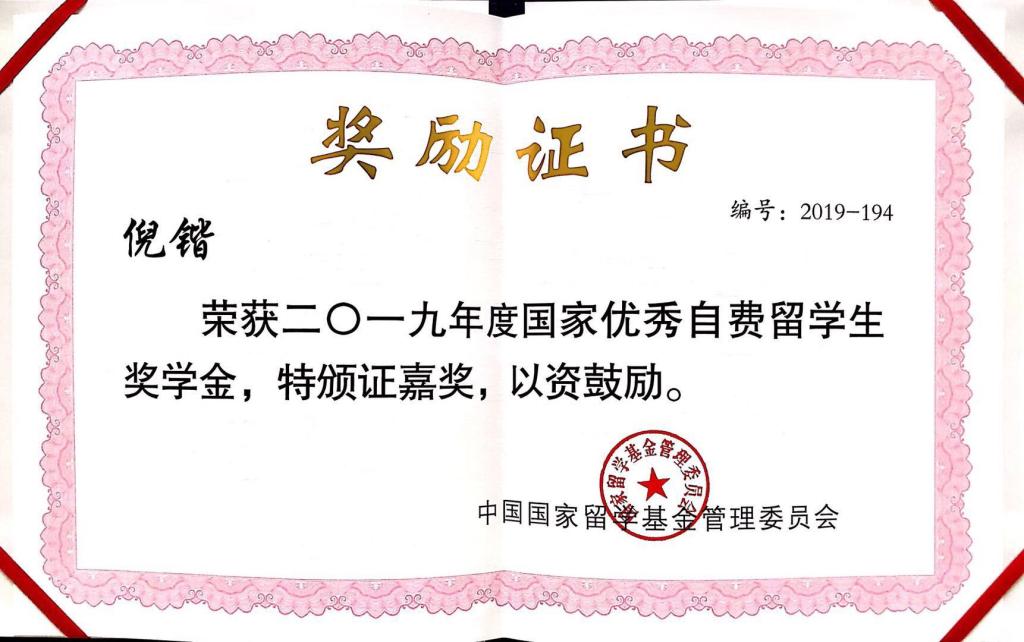 2019年度国家优秀自费留学生奖学金评选结果近日公布,我院博士后倪锴作为英国利物浦大学2019届博士毕业生,成为利物浦大学唯一获奖者(全球仅500位获奖者)。